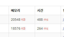 차례대로 1번 형식으로 한 문제 해결의 시간이 488ms이고, 2번 형식으로 한 것은 264ms인 것을 알 수 있다.